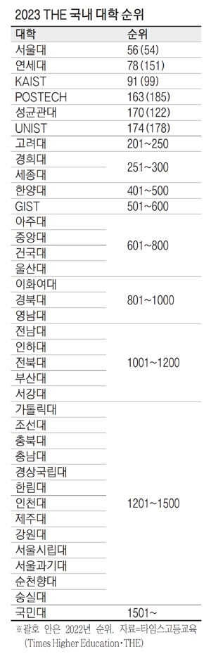 < World University Rankings 2023 > (The Times, 2022. 10)